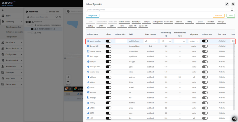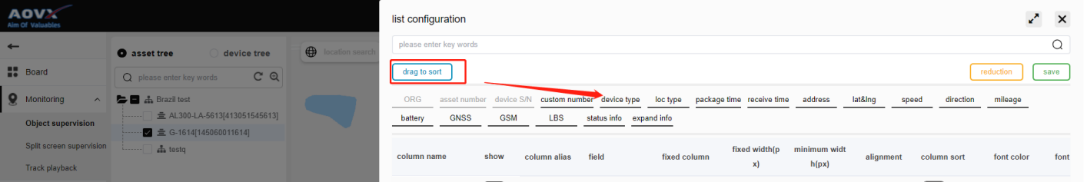 We can sort the fields displayed in the list through “drag to sort”, or we can click on a column to customize the title name, display, width, font style, and whether it display.