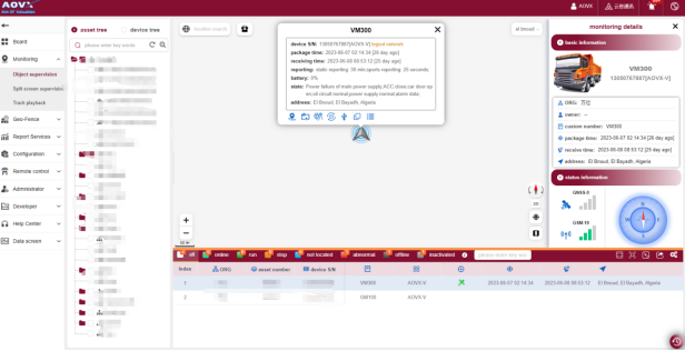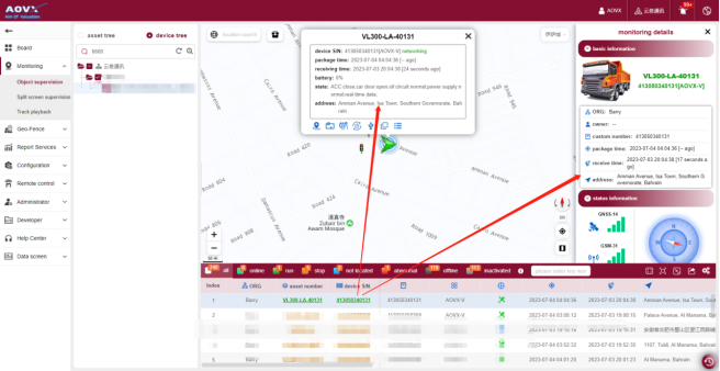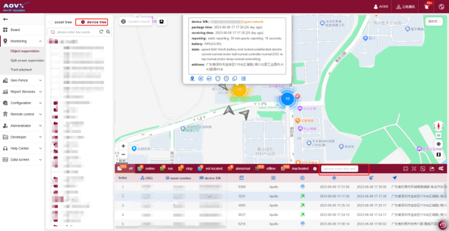 In the Monitoring interface, we can monitor the real-time status, location and other real-time information of the assets.